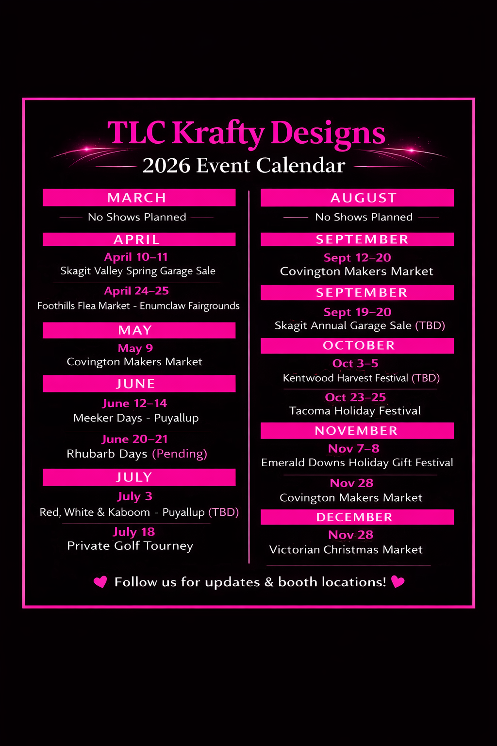 View Our Chamber ProfileTLC Krafty Designs is honored to be part of the Covington Chamber, supporting local businesses, events, and community growth throughout the Pacific Northwest.