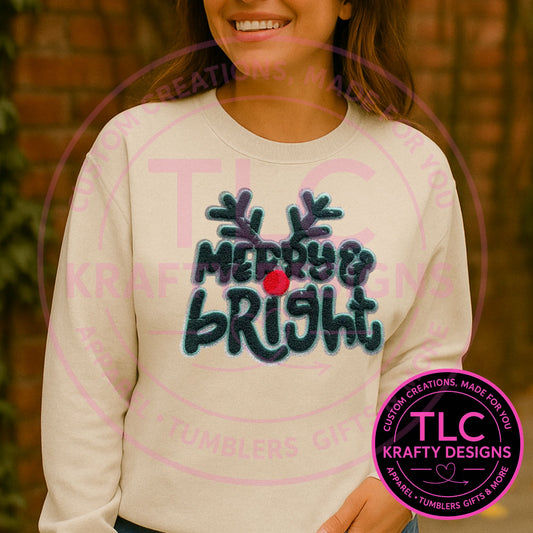 Merry & Bright Sweatshirt – Red & Green Sequin Patch on Hoodie or Crewneck