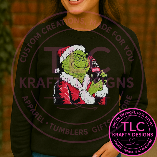 PREORDER XL Santa Grinchy Holding Soda Chenille Patch – Festive Holiday Iron-On / Sew-On Applique CK