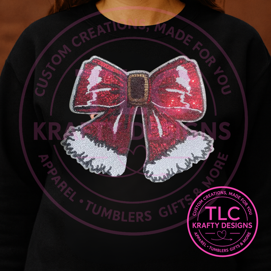 XL Red Christmas Bow Sequin Patch – Festive Holiday Appliqué