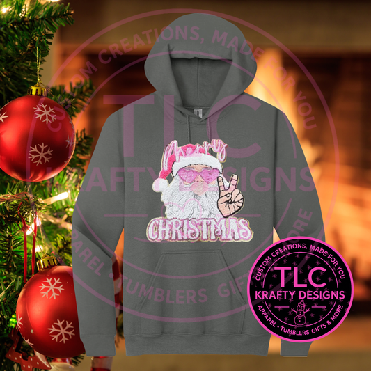 XL Peace & Love Santa Chenille Patch – Pink Sequin Merry Christmas Iron-On / Sew-On Appliqué