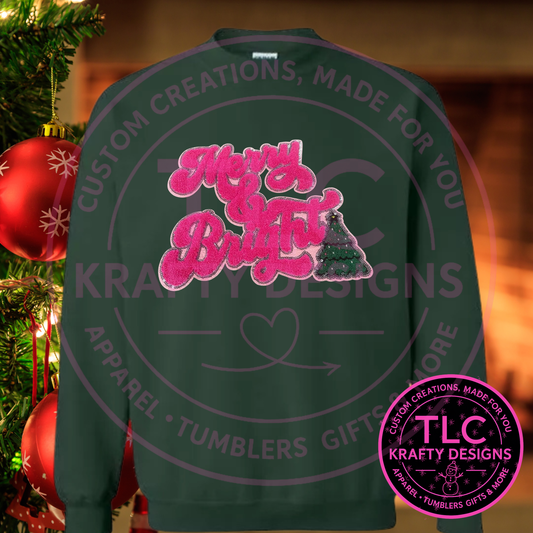 XL Merry and Bright Chenille Patch – Festive Christmas Iron-On / Sew-On Appliqué CK
