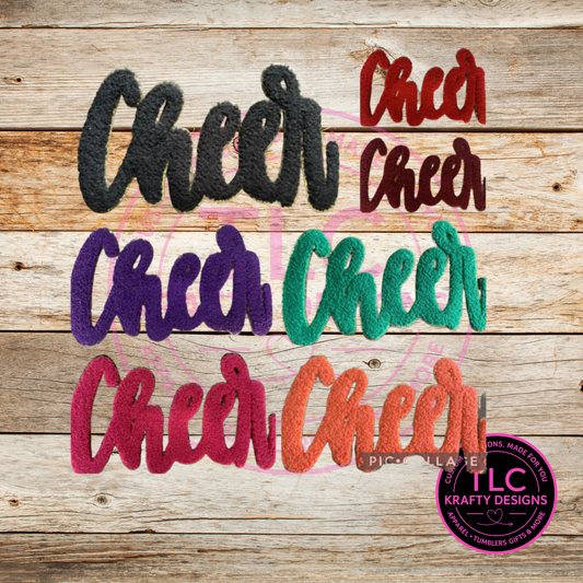 XL Cheer Chenille Patch – Fuzzy Script Letter Patch for Cheer & Dance Apparel (Approx. 10.5”)