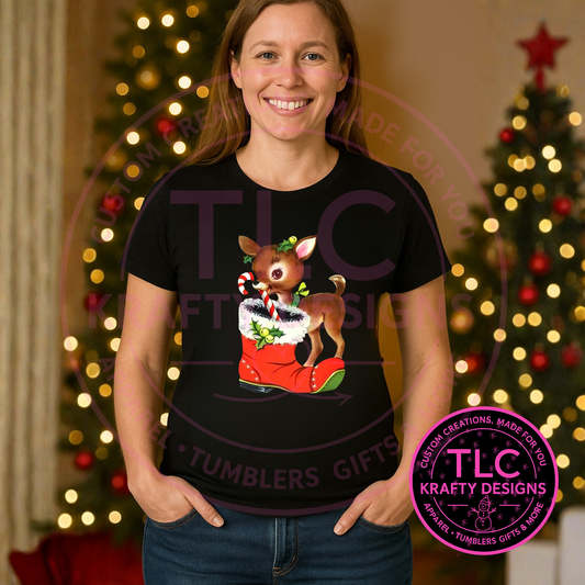 Vintage Deer Graphic T-Shirt - Festive Christmas Long or Short Sleeve Tee CK