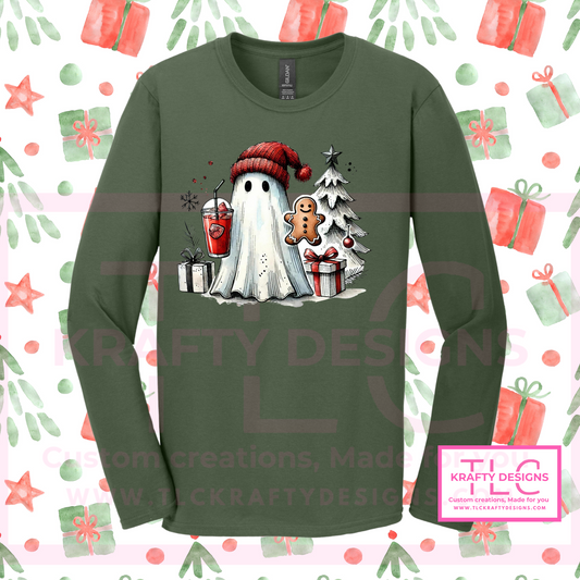 Ghostmas Holiday T-Shirt – Cute Ghost Christmas Long or Short Sleeve Tee CK