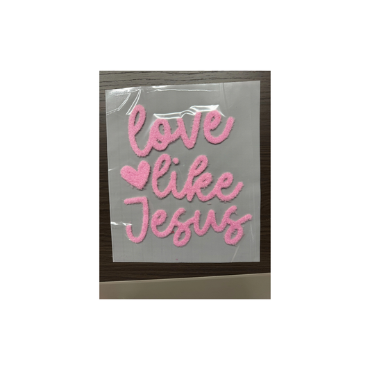 XL Love Like Jesus Pink Fuzzy Chenille Patch - Valentine's Day Iron-On/ Sew-On Appliqué