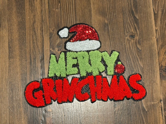 Merry Grinchmas Patch – Sequin & Chenille Iron-On (Approx. 10”)