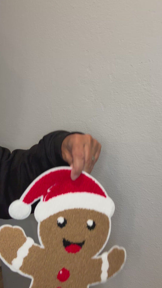 🎄 Gingerbread Man Holiday Hoodie – Chenille Patch with Santa Hat (S–4XL)
