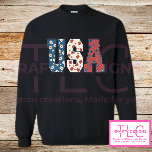 Floral USA Sweatshirt – Retro Patriotic Crewneck in Multiple Colors