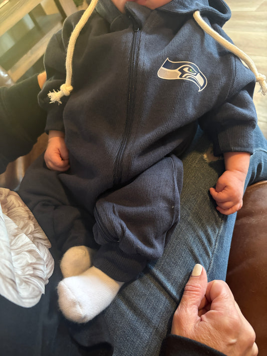 Seattle Football Infant Hooded Zip Romper | Cozy Game Day Baby Outfit