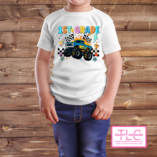 Colorful Monster Truck Grade-Level Youth T-Shirts – Back-to-School Graphic Tees