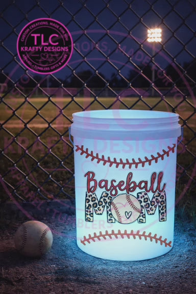 Baseball Mom White LED Bucket with Lid | Custom UVT Design + Seat Lid Upgrade
