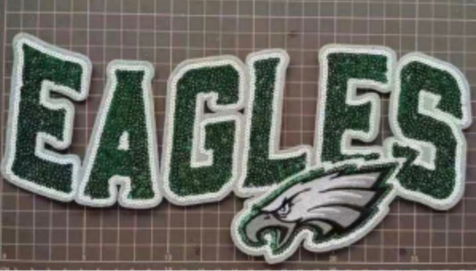 XL Eagles Chenille Patch – Oversized Iron On Football Patch | Green White Team Spirit Appliqué | Jacket Sweatshirt Patch