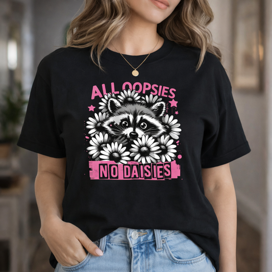 All Oopsies No Daisies Raccoon Graphic Shirt & Sweatshirt – Funny Floral Animal Apparel