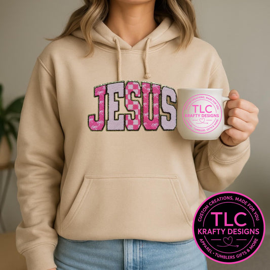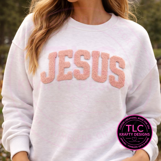 JESUS Fuzzy Patch – Soft Chenille Iron On Patch | Faith Patch | Christian Appliqué for Sweatshirts Jackets