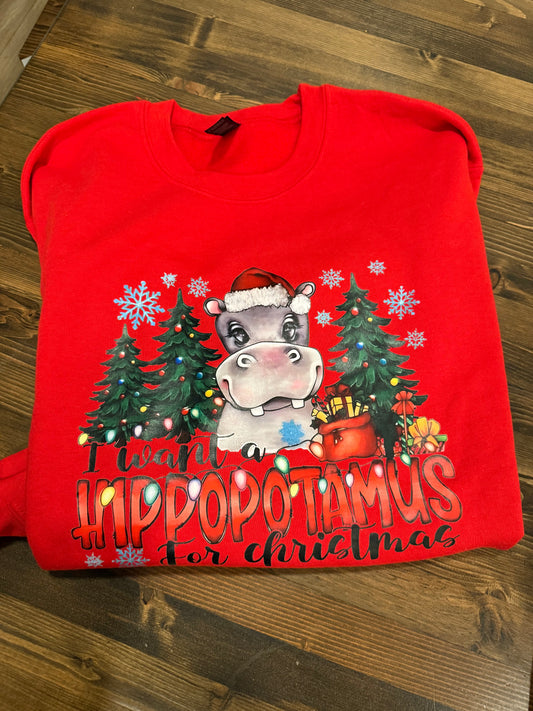 LAST CHANCE Hippo for Christmas Sweatshirt - Festive Christmas Crew Neck