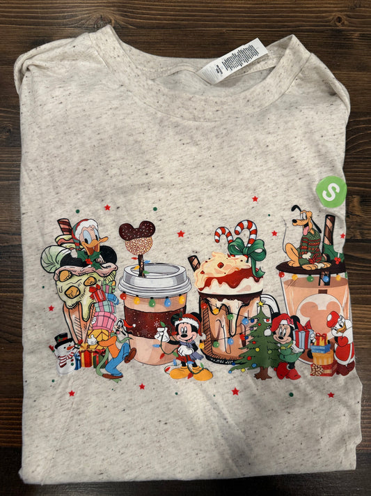 LAST CHANCE Mickey and Friends Christmas Coffee T-Shirt - Festive Christmas Short Sleeve Tee CK