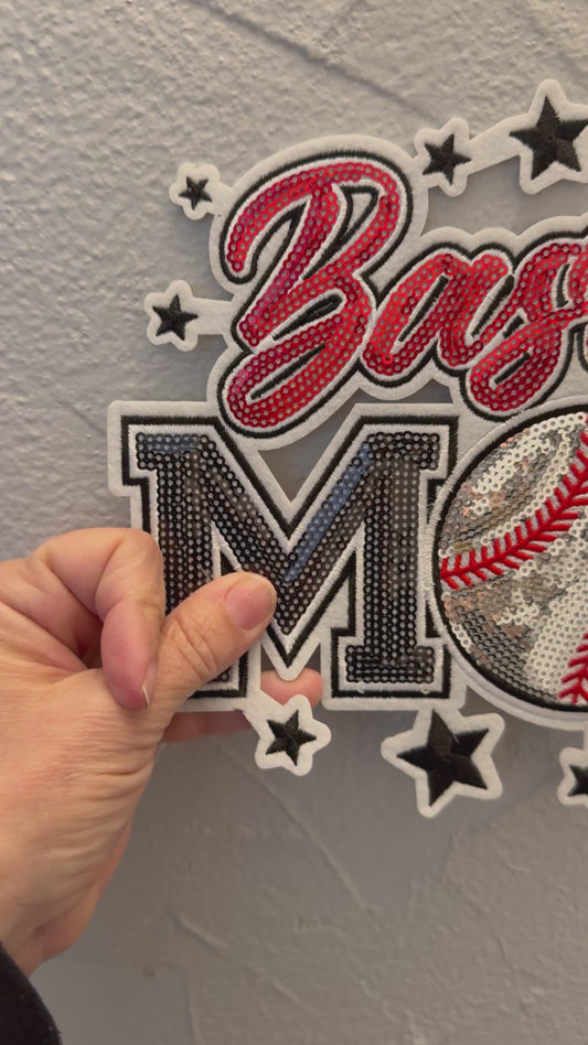 XL Baseball Mom Chenille Patch – Oversized Iron On Sports Patch | Sequin Baseball Appliqué | Jacket Sweatshirt Patch