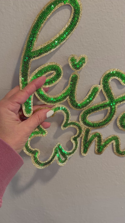 Kiss Me Sequin Patch Shirt or Sweatshirt – St. Patrick’s Day Lucky Shamrock Top, Green Holiday Apparel