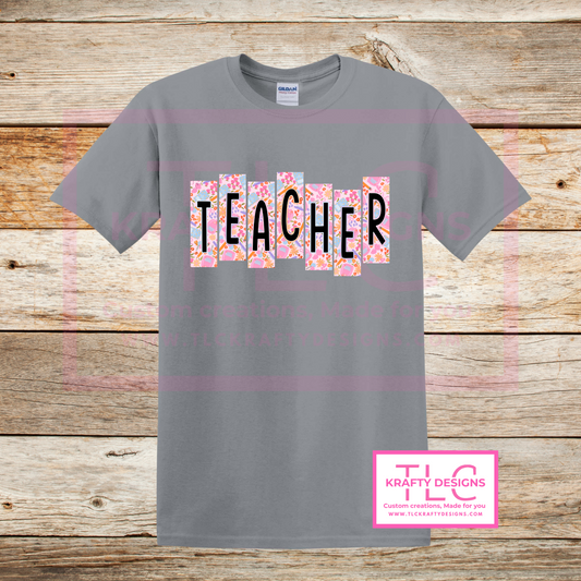 Floral Block Letter Staff Shirts – Teacher, SPED, PARA, Counselor & More