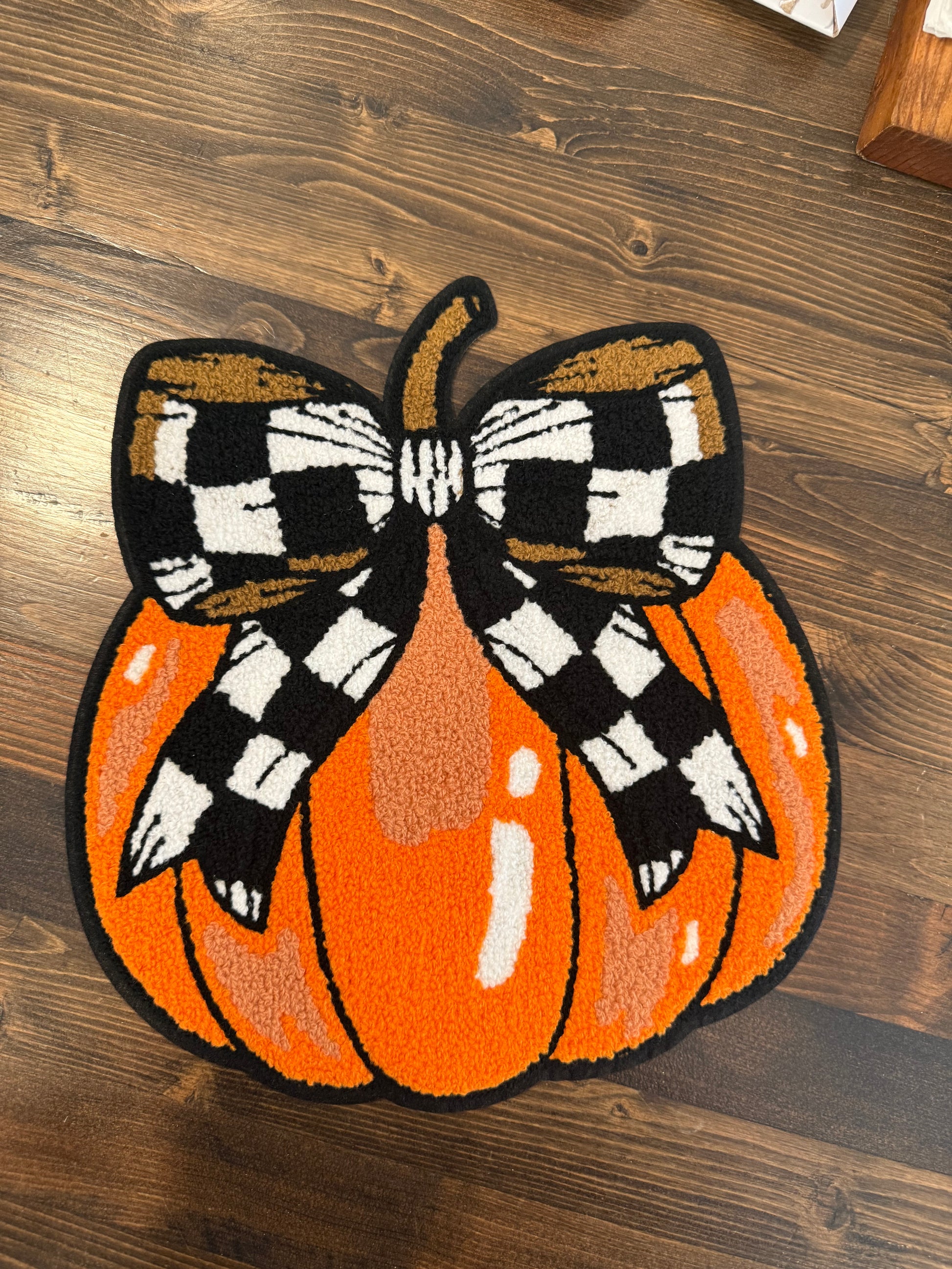 Celebrate spooky season in style with this cozy sweatshirt featuring a bold chenille patch of an orange pumpkin topped with a black-and-white checkered bow. This fun and festive design brings just the right mix of Halloween charm and fall flair!