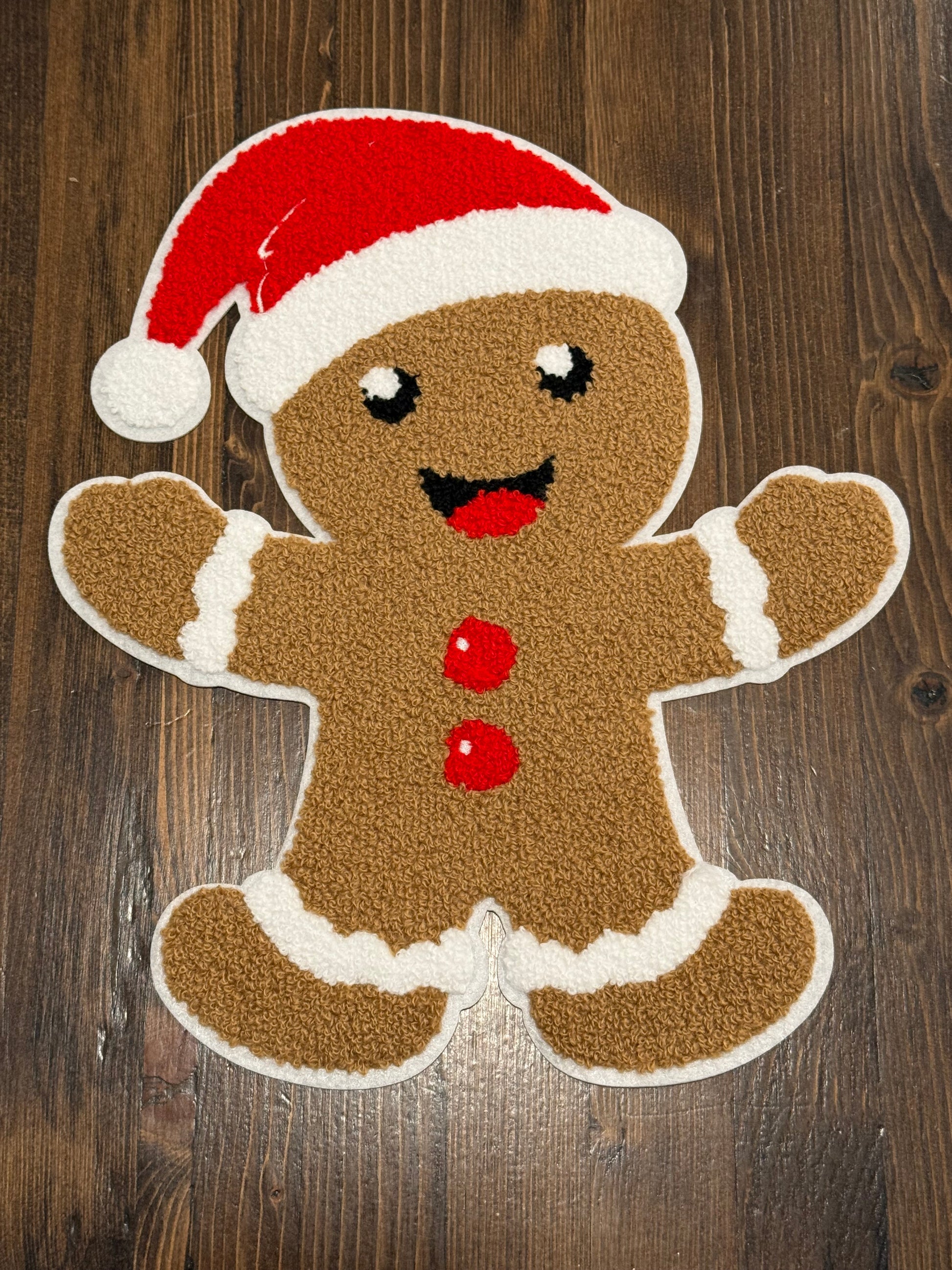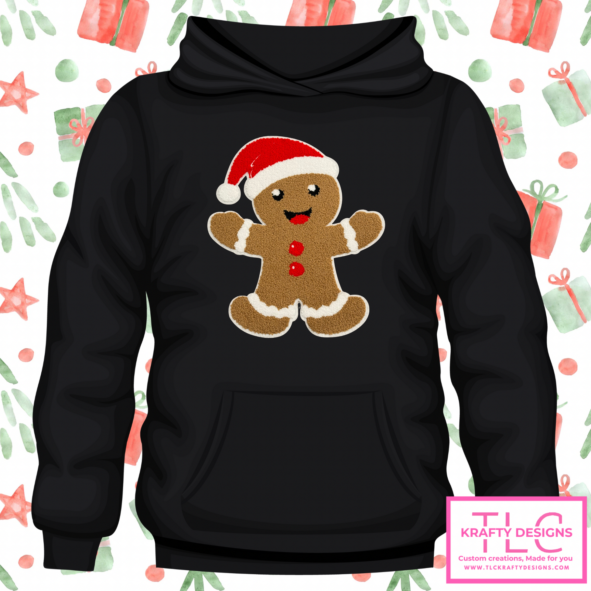 πŸŽ„ Gingerbread Man Holiday Hoodie – Chenille Patch with Santa Hat (S–4XL)