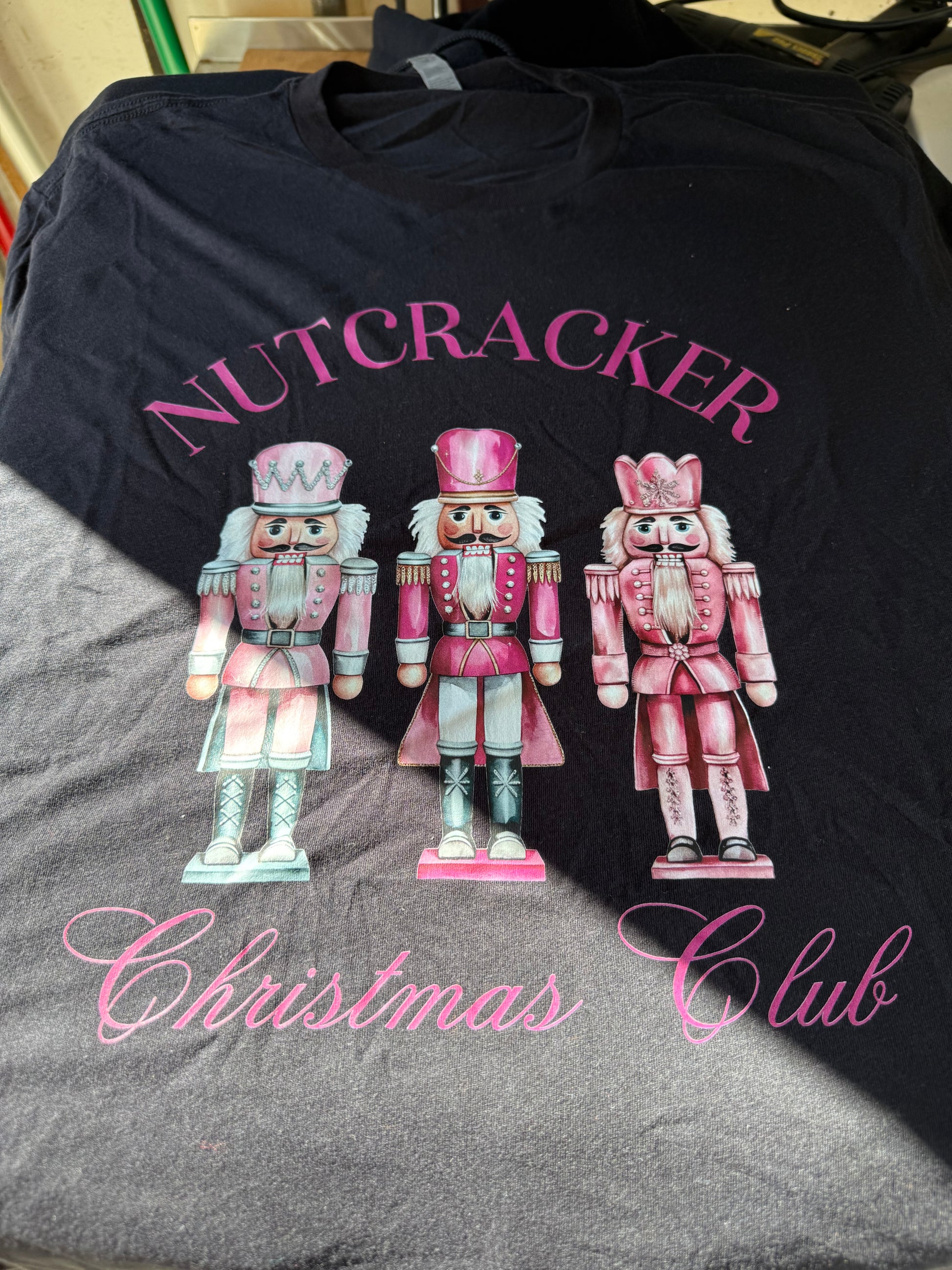 Celebrate the holiday season in classic style! This festive tee features three traditional nutcrackers in shades of pink, paired with bold βNutcracker Christmas Clubβ lettering. Perfect for anyone who loves ballet, Christmas traditions, or simply showing off holiday cheer.