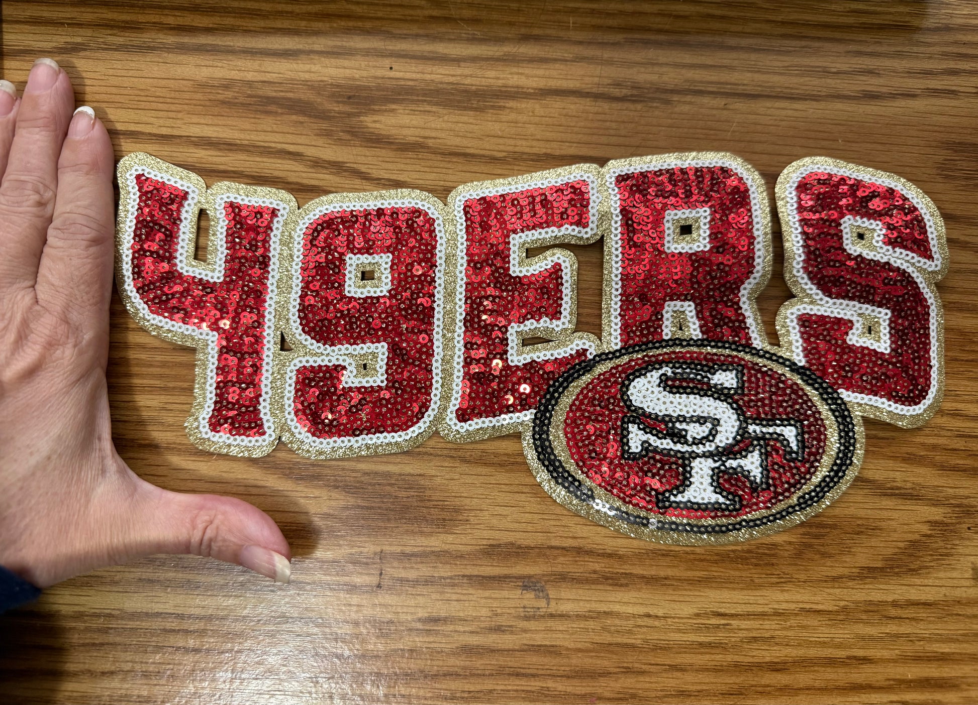 Discover our 49ers Sequin Letter Patch Set! This patch set features bold red sequined letters with gold trim and a matching football logo that’s perfect for San Francisco football fans. Eye-catching sparkle with a premium chenille-style look. Ideal for customizing sweatshirts, jackets, or game-day apparel. Makes a great gift for football fans, tailgates, and game day outfits!