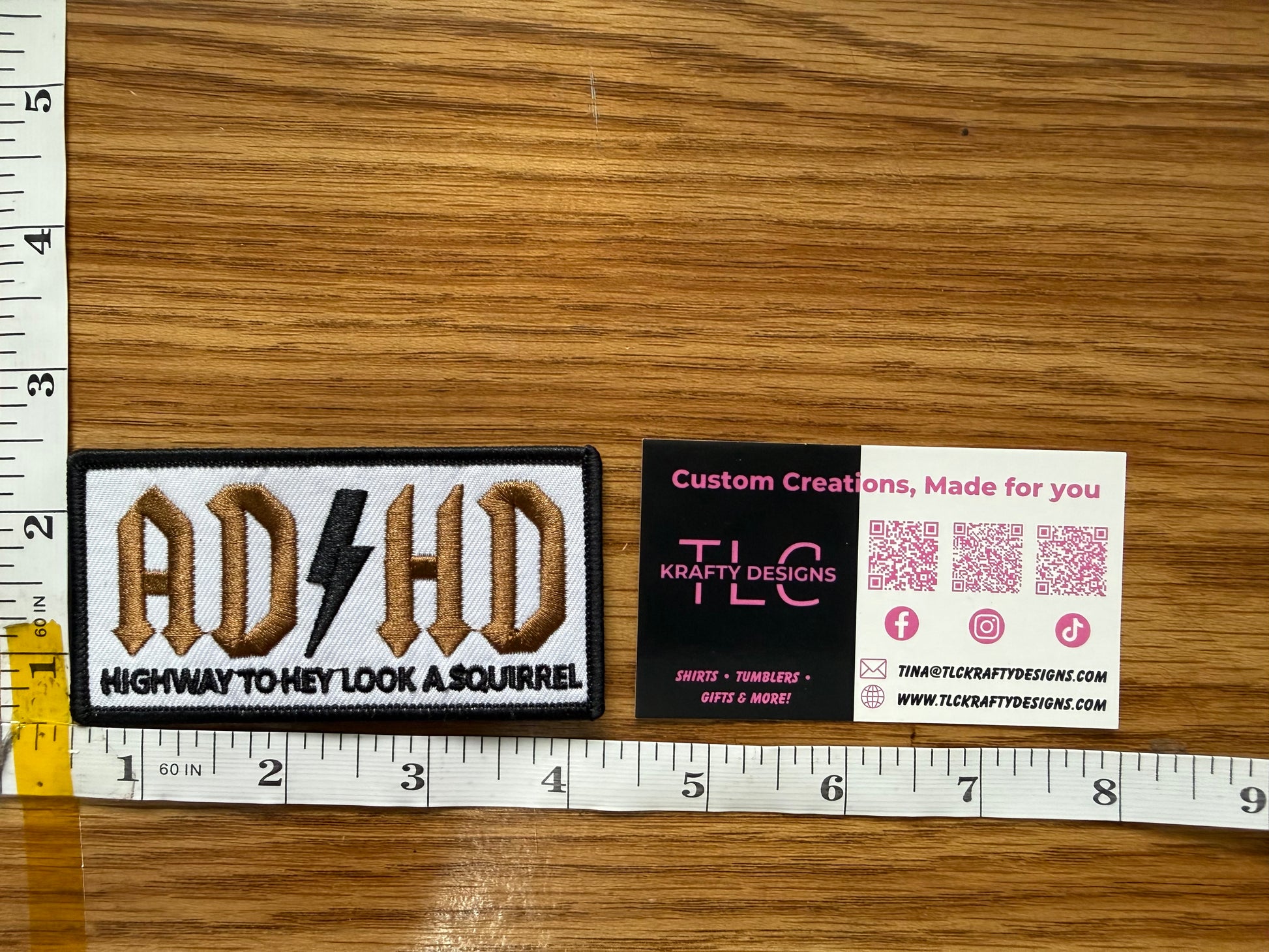 The ADHD Highway to Hey Look a Squirrel Patch is bold, edgy, and hilariously relatable. Featuring gothic-style gold lettering with a lightning bolt detail and the playful phrase underneath, this embroidered patch is made to stand out.