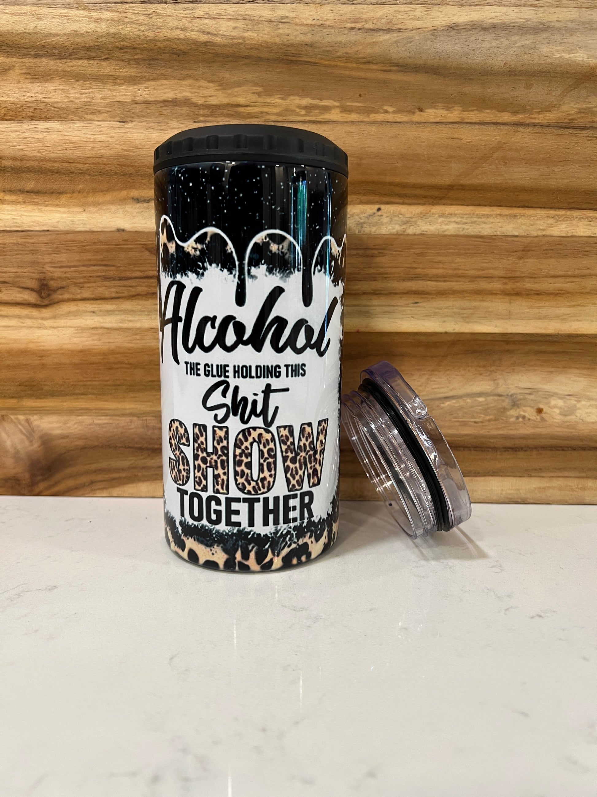Alcohol The Glue Holding this Sh$t Show together 16oz. 4 in 1 Can/Bottle Cup Holder
