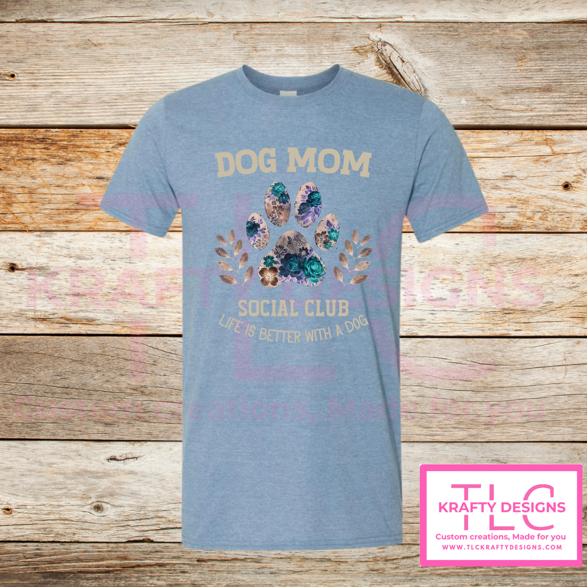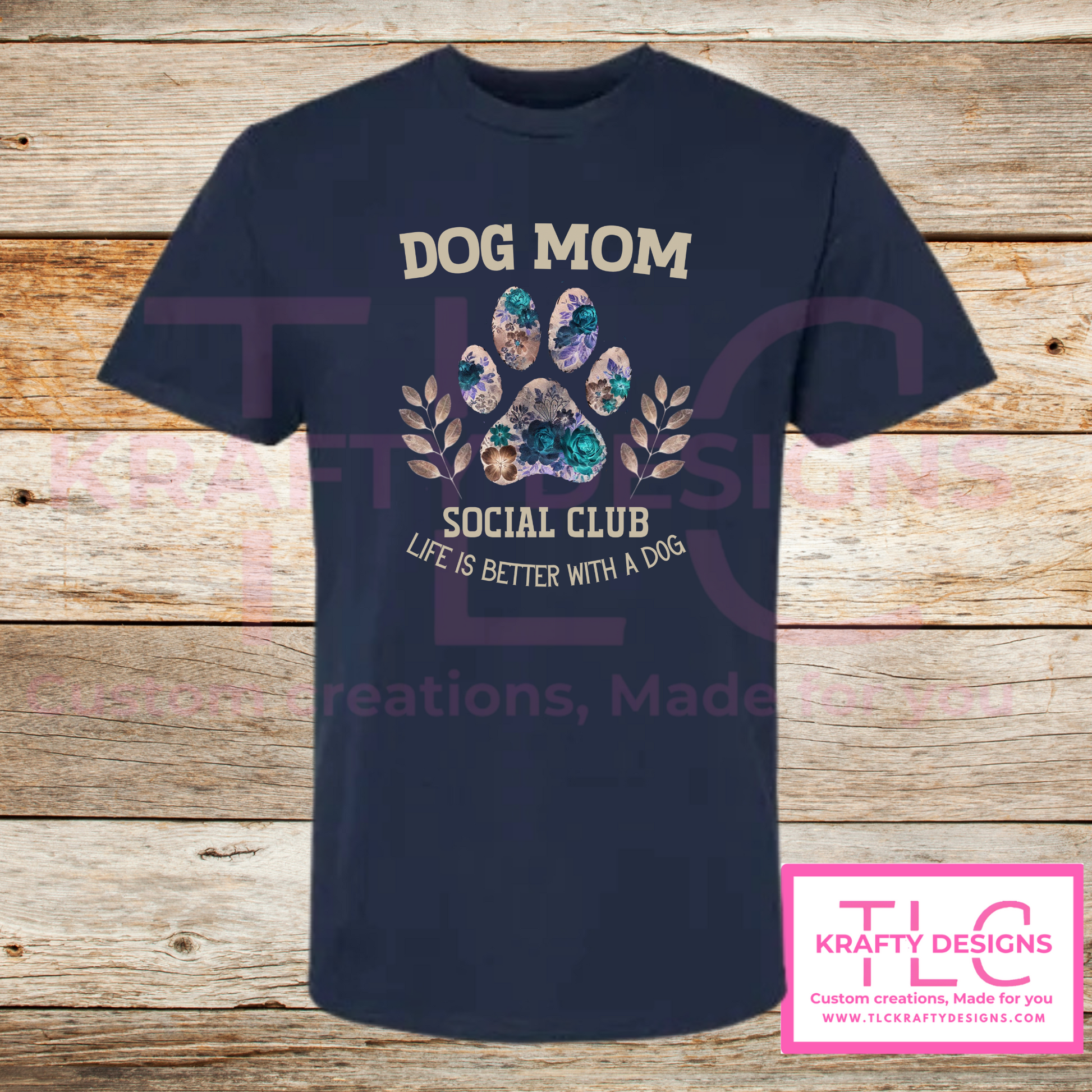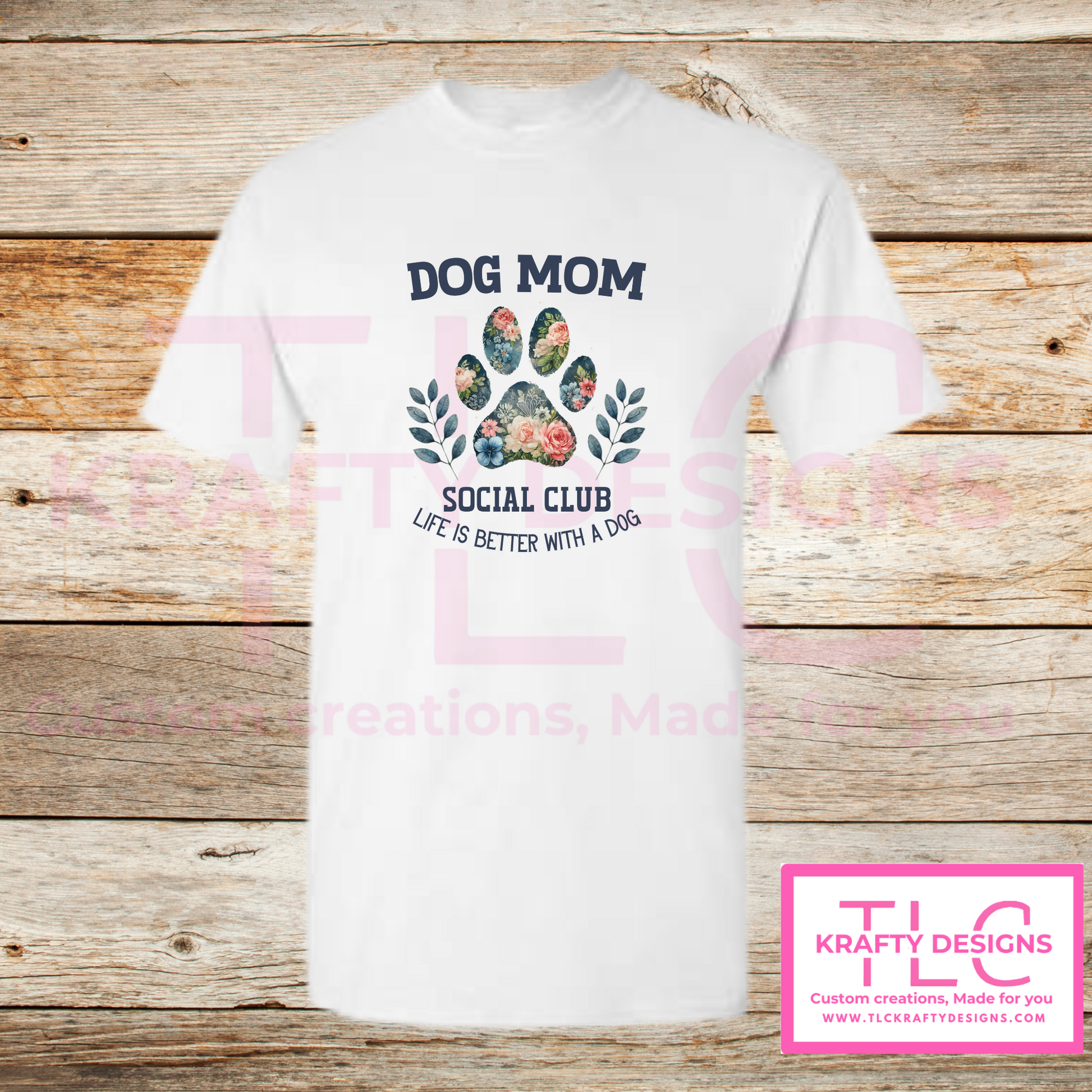 Dog Mom Social Club Floral Paw Shirt – Life Is Better with a Dog