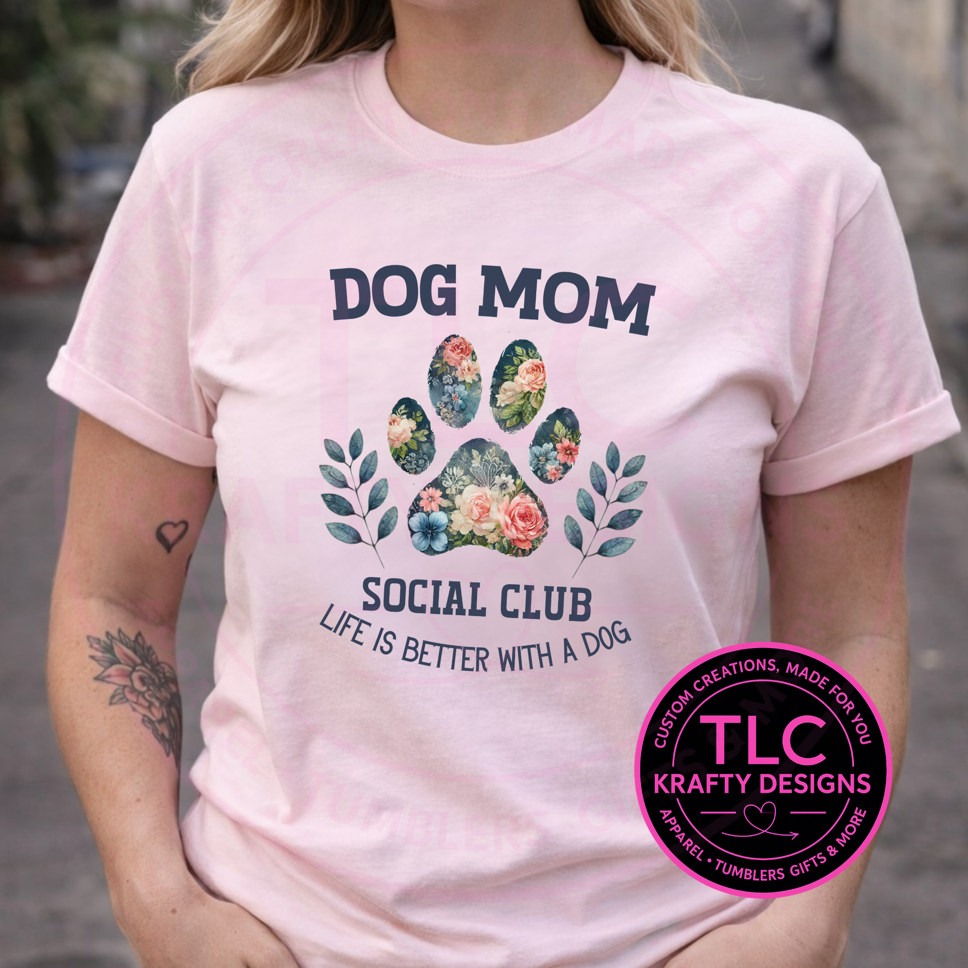 Dog Mom Social Club T-Shirt or Sweatshirt – Floral Paw Print Graphic