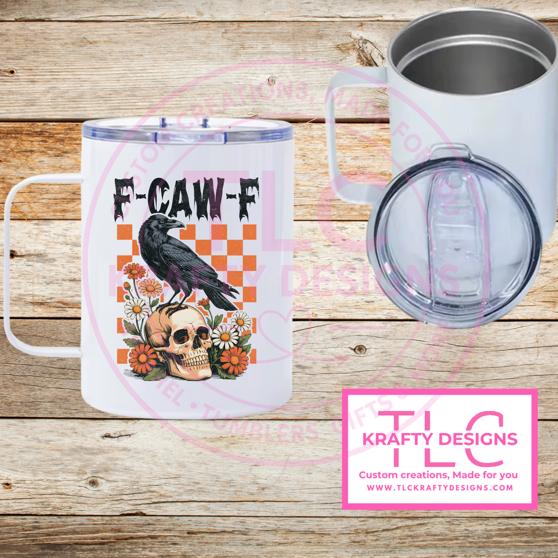 F-CAW-F Crow Skull Mug – 12oz Gothic Raven Travel Coffee Cup with Lid