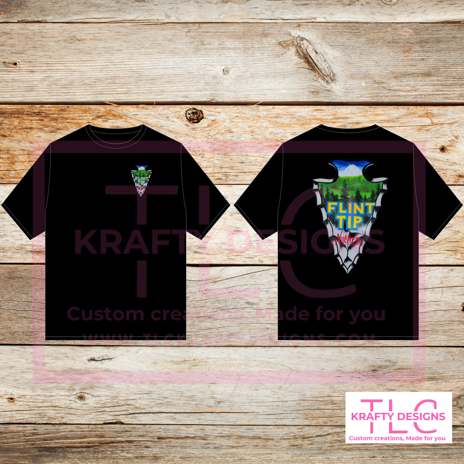 Represent your passion for archery and the great outdoors with this bold Flint Tip Archers design. Featuring a scenic mountain and forest backdrop set in a stylized flint arrowhead, this design is perfect for club members, outdoor enthusiasts, or anyone who loves nature and precision.