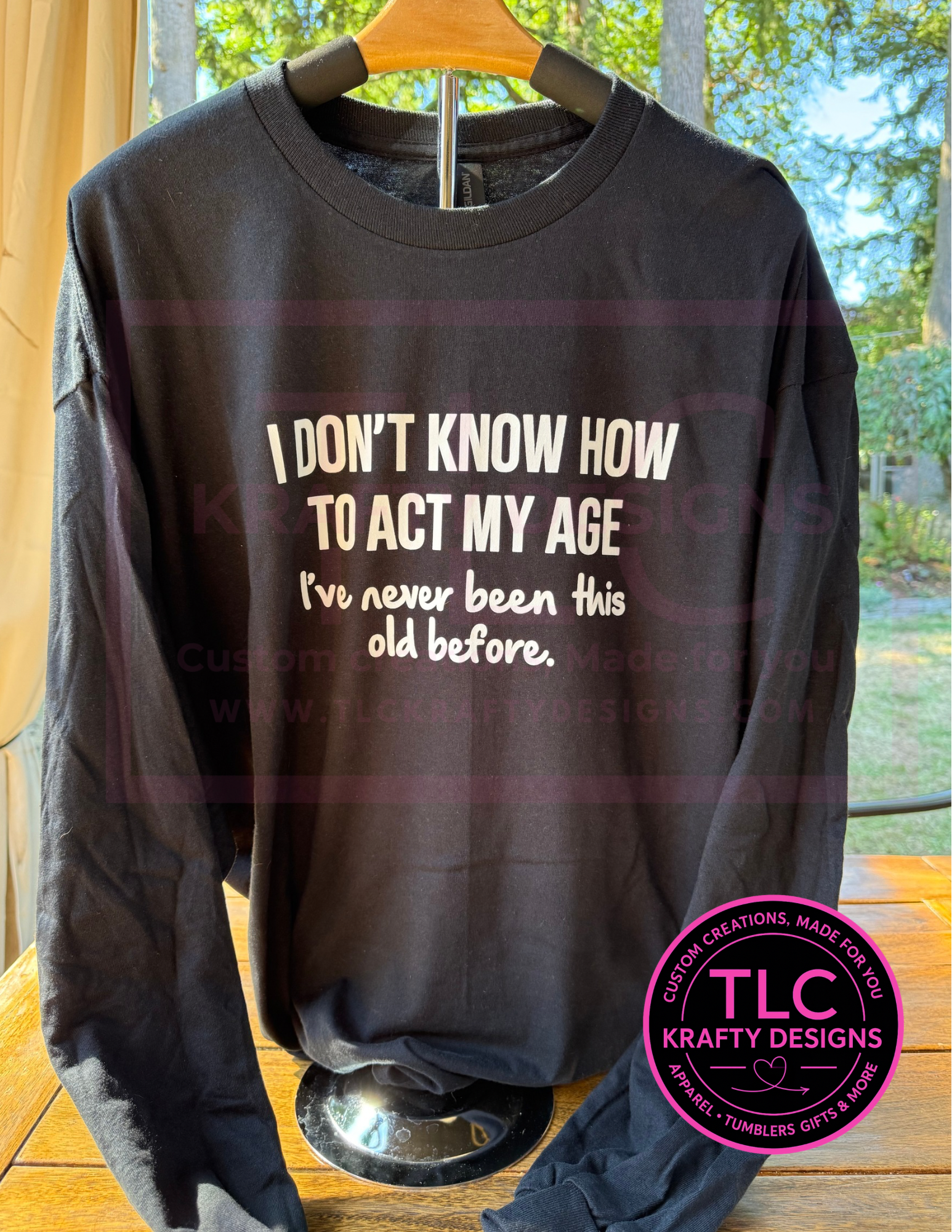 Funny “I Don’t Know How to Act My Age” Shirt – Short or Long Sleeve – Humor Tee by TLC Krafty Designs