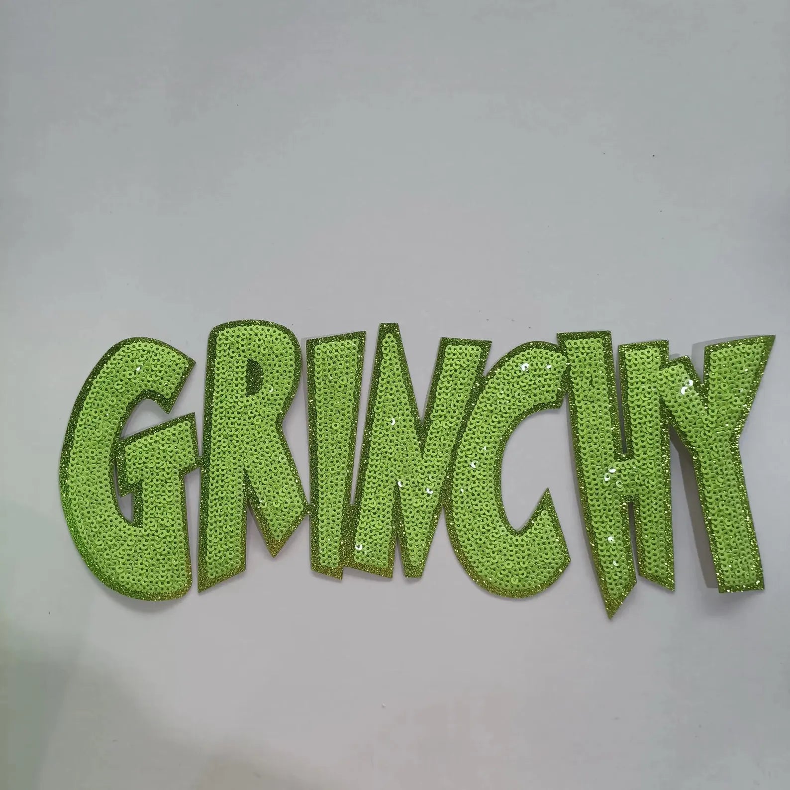 Green Grinchy Sequin Patch - Festive Iron-On / Sew-On Holiday Applique CK