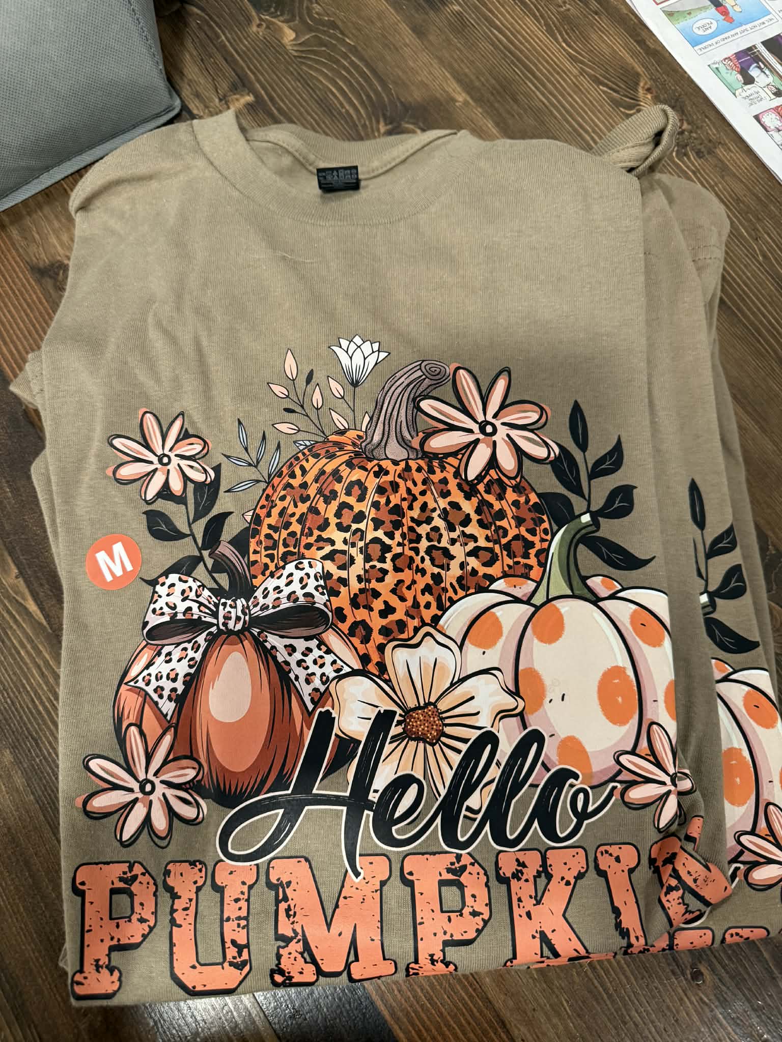 Hello Pumpkin Fall Shirt – Leopard Pumpkin Autumn Graphic Short Sleeve Tee LAST CHANCE CK