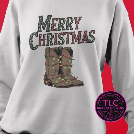 Merry Christmas Mug – 12oz Travel Mug with Lid, Cowboy Boots Holiday Coffee Cup