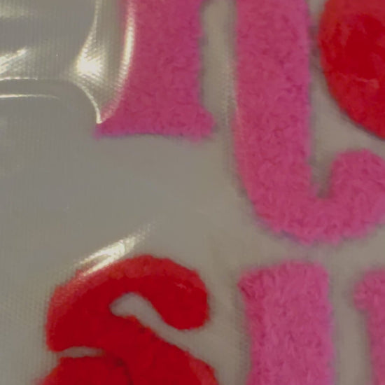 Featuring raised, plush lettering in pink and red with a heart accent, this patch is perfect for Valentineās Day outfits or anytime you want a fun, flirty statement.