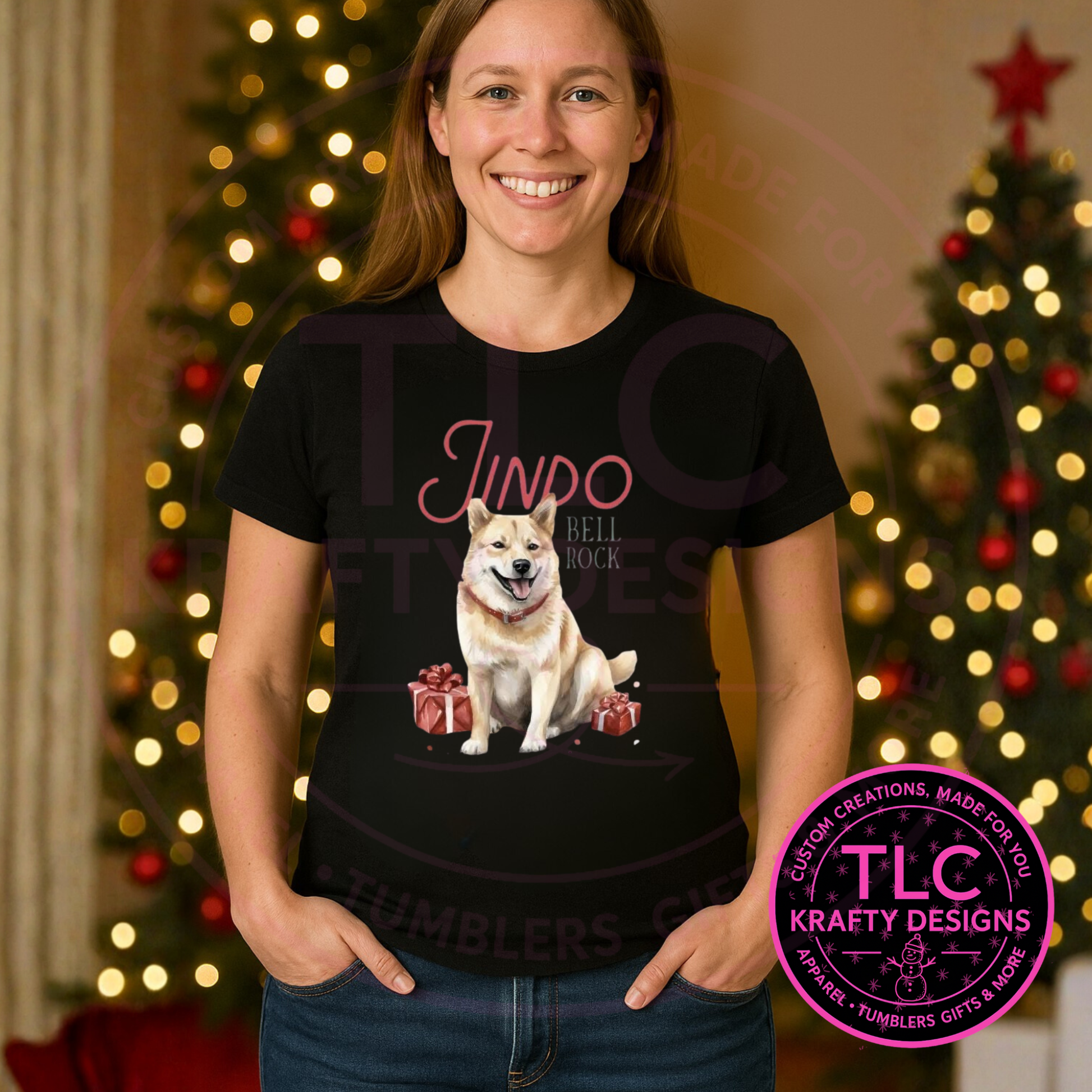 Jindo Bell Rock Christmas T-Shirt – Festive Holiday Dog Lover Long or Short Sleeve Tee CK