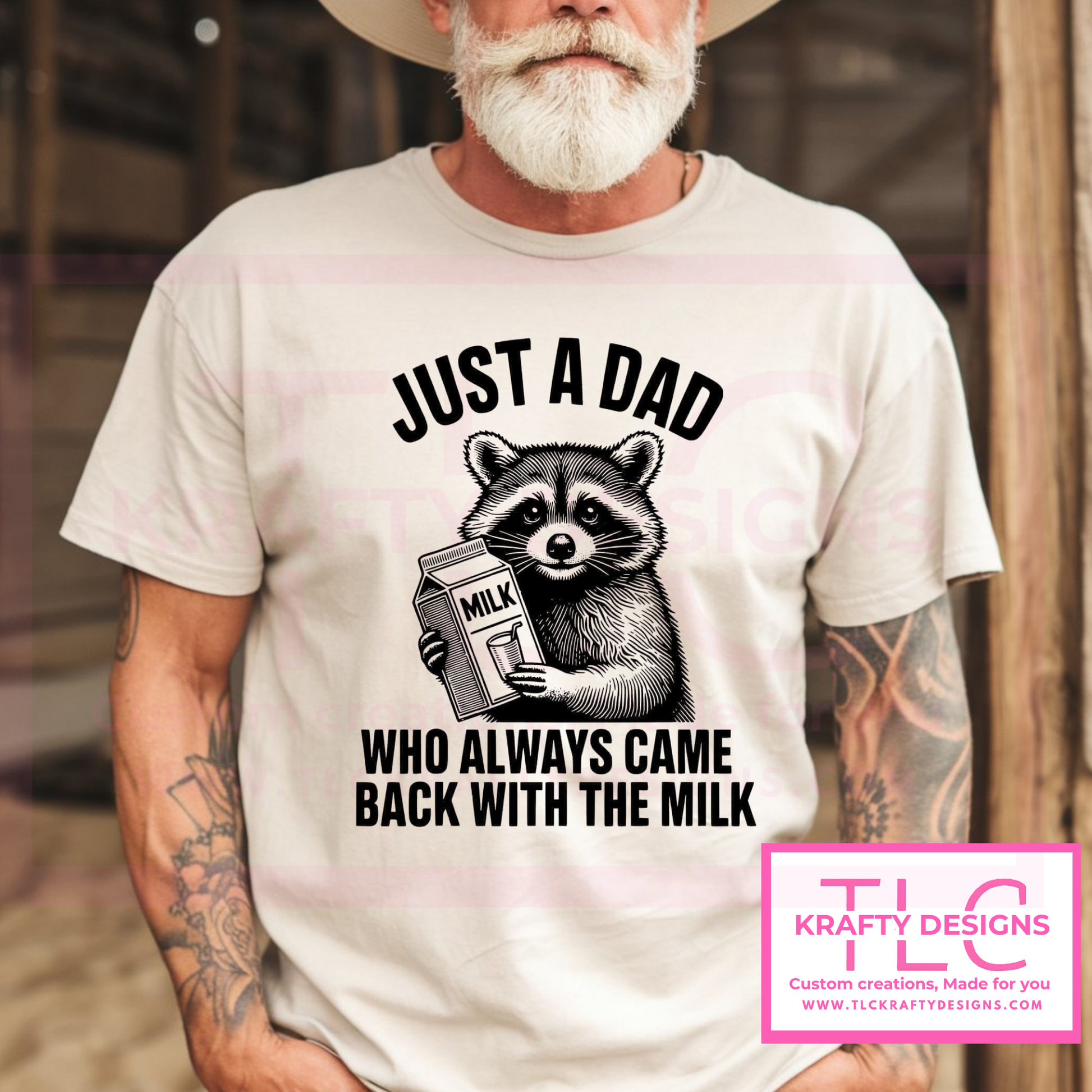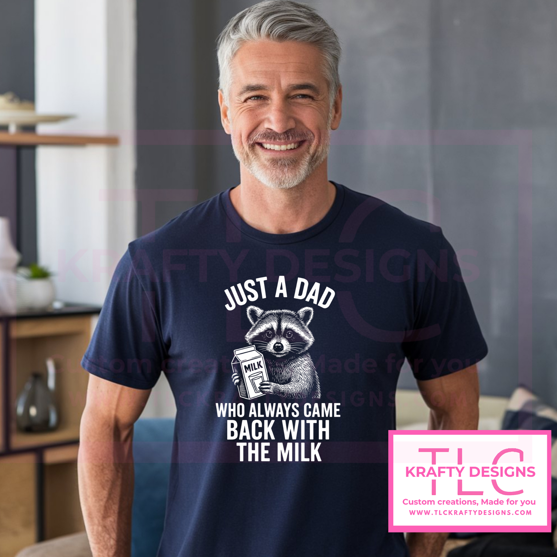 Just a Dad Who Always Came Back with the Milk – Funny Raccoon Shirt