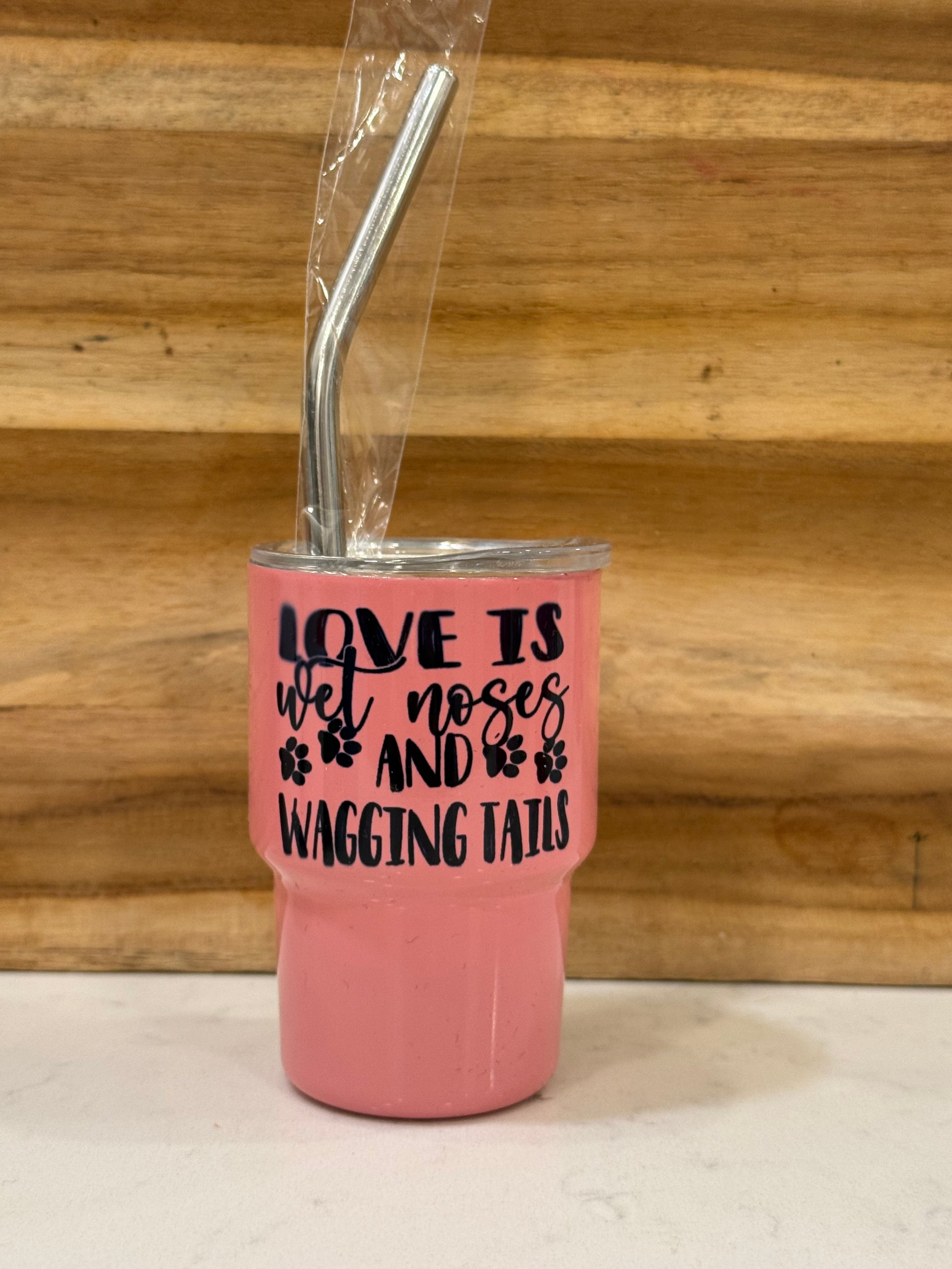 Love is wet noses and wagging tails 3 ounce mini shot glass