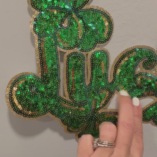 Celebrate St. Patrick’s Day in style with this Lucky sequin patch top, available as either a t-shirt or a cozy sweatshirt. Featuring shimmering green sequins, gold accents, and clover details, this bold design adds the perfect festive touch to your holiday outfit—or everyday wear if you’re feeling extra lucky.