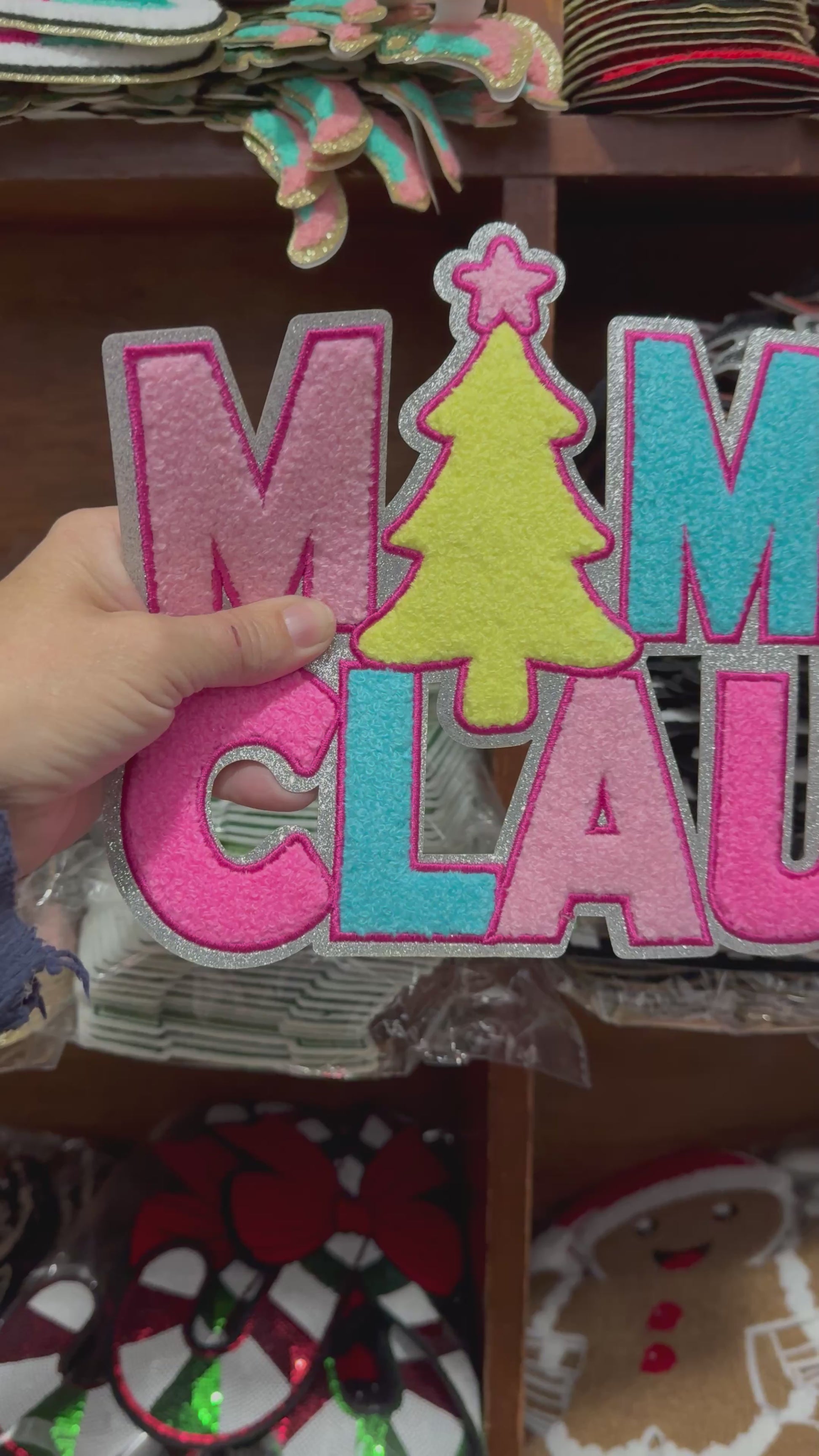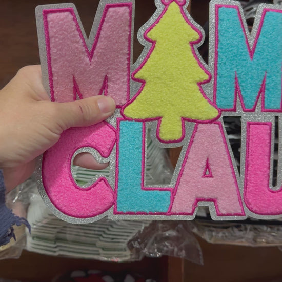 Bring the holiday cheer to your favorite apparel with this Mama Claus XL Chenille Patch! 🎄✨ Perfect for sweatshirts, jackets, totes, or DIY holiday projects, this bold and colorful chenille patch features festive pink, blue, and yellow lettering with a Christmas tree and Santa hat accenT