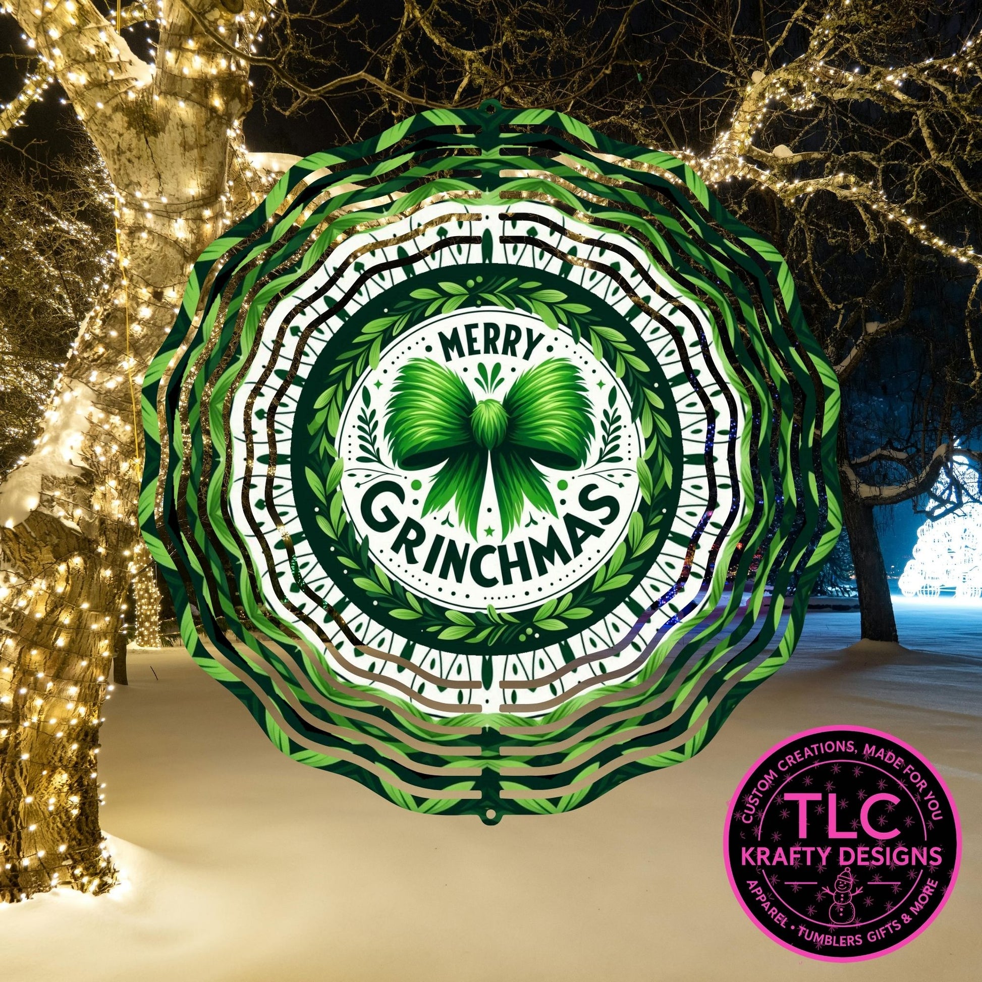 Merry Grinchmas Bow 10” Wind Spinner – Festive Christmas Sublimated Metal Yard Décor CK