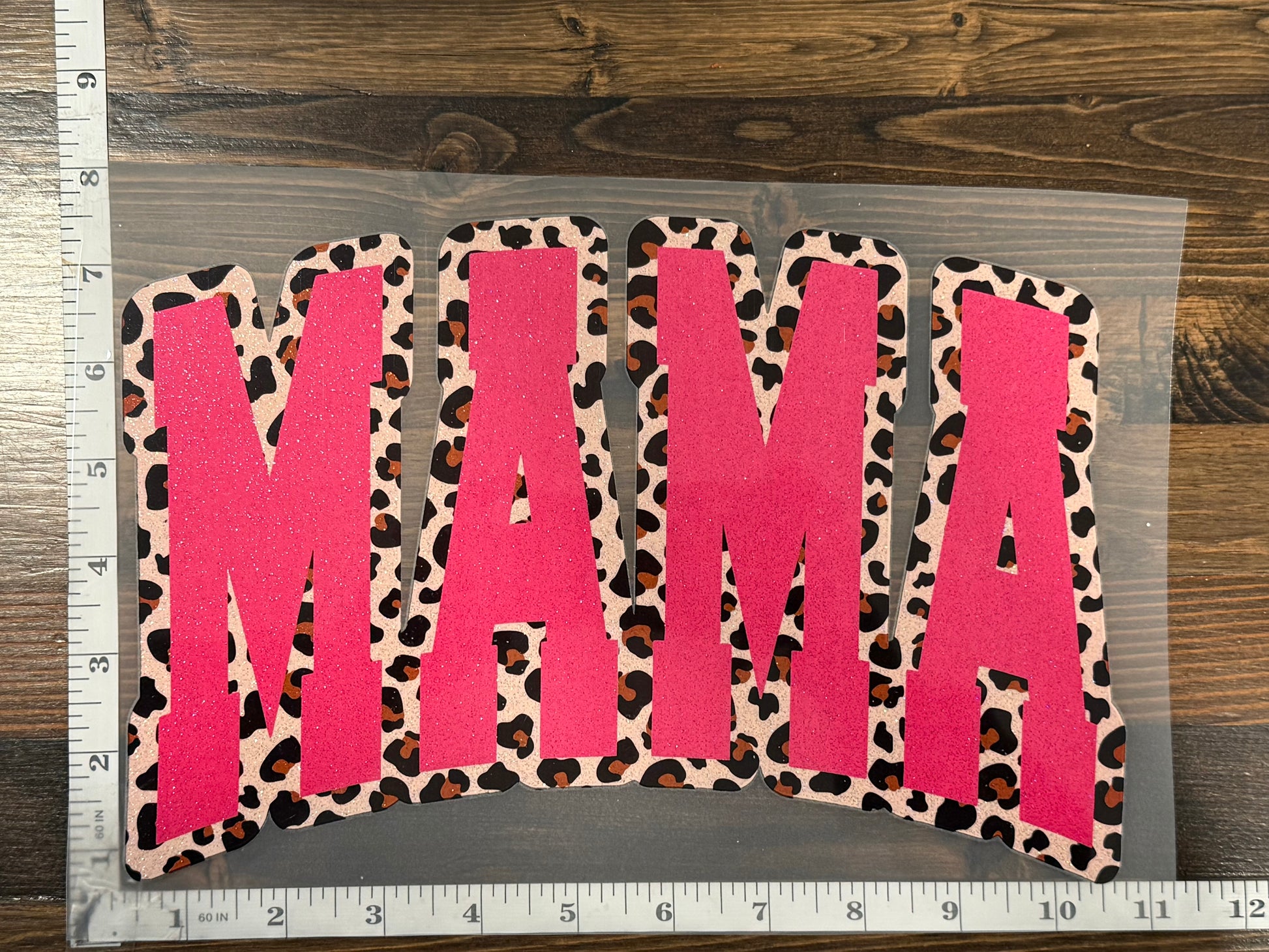 Discover our Pink Glitter Mama Silk Screen Transfer! This ready-to-press transfer features a bold “Mama” design with a glitter finish and leopard print outline that's perfect for trendy, standout apparel. Easy to apply with a heat press. Delivers a vibrant, professional-quality result. Ideal for DIY projects or resale. Makes a great gift for moms, birthdays, and holidays!