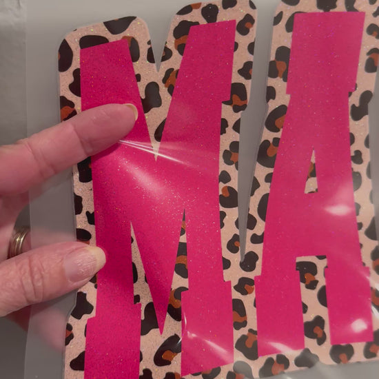 Pink Glitter Mama Silk Screen Transfer – Leopard Outline Ready to Press