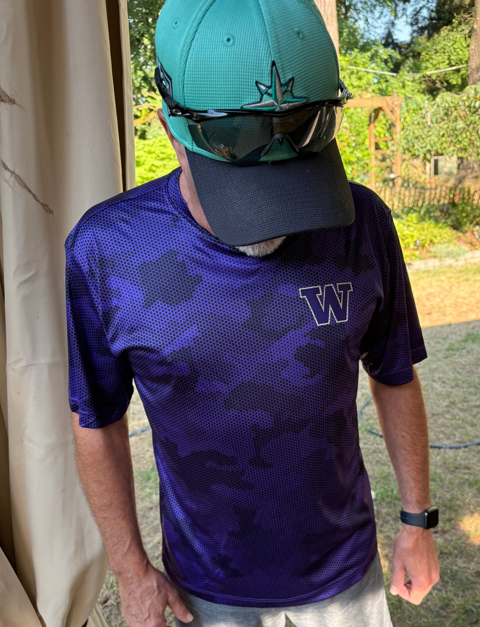 Purple Digital "W" Camo Performance Tee – Athletic Moisture-Wicking Shirt