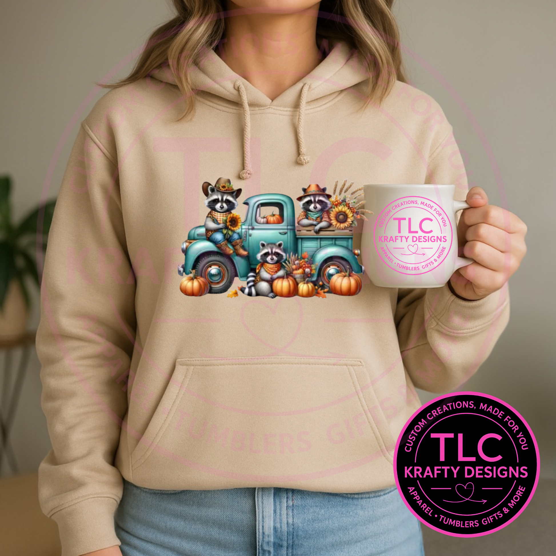 Raccoon Trio Fall Truck Sweatshirt - Autumn Essentials Crew Neck or Hoodie CK