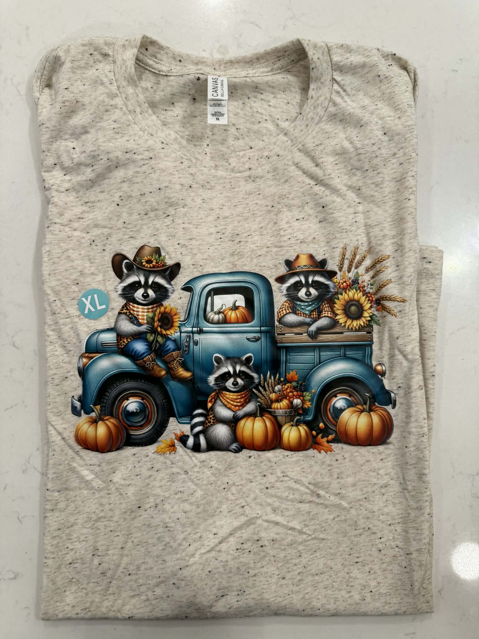 Raccoon Trio Fall Truck T-Shirt - Autumn Essentials Tee LAST CHANCE CK
